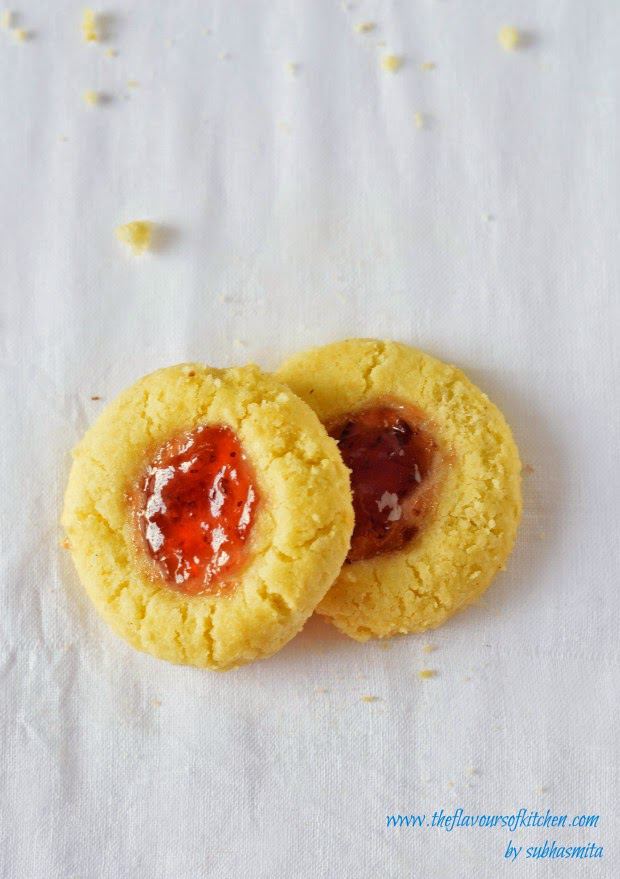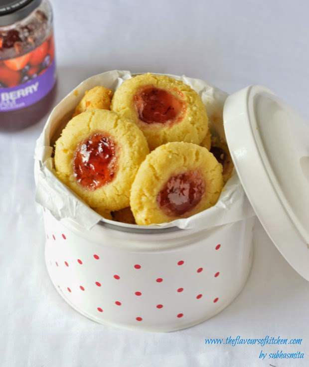 Keeping the festive season in mind I tried these thumbprint cookies aka jam cookies. I just fell in love with this one.Its buttery and melt in mouth. The sweetness is nicely balanced with the little tang of jam.One more bonus is these are eggless too. I have used mixed berry jam here as that is what